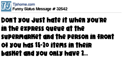 X Don't you just hate it when you're in the express queue at the supermarket and the person in front of you has 15-20 items in their basket and you only have 2...