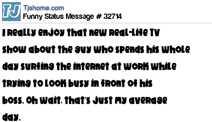 X I really enjoy that new real-life TV show about the guy who spends his whole day surfing the internet at work while trying to look busy in front of his boss. Oh wait, that's just my average day.