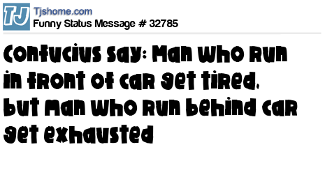 X Confucius say: Man who run in front of car get tired, but man who run behind car get exhausted