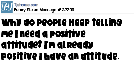 X Why do people keep telling me I need a positive attitude? I'm already positive I have an attitude.