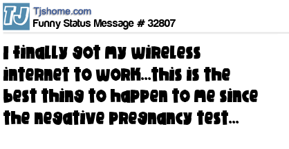 X is I finally got my wireless internet to work...this is the best thing to happen to me since the negative pregnancy test...