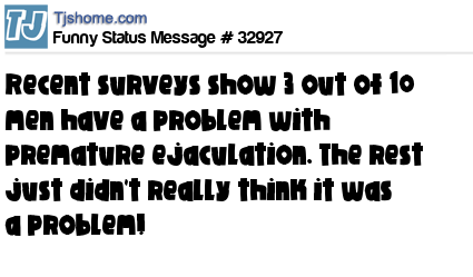 - # 32956 Recent surveys show 3 out of 10 men have a problem with premature ejaculation. The rest of us just don't think it's a problem.