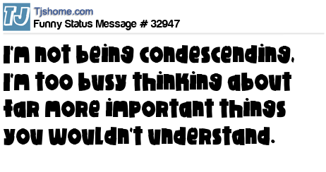 X says I'm not being condescending, I'm too busy thinking about far more important things you wouldn't understand.
