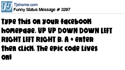 X Type this on your facebook homepage. UP UP DOWN DOWN LEFT RIGHT LEFT RIGHT B, A + enter then click. The epic code lives on!