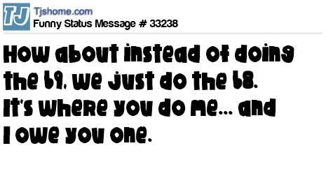 X says How about instead of doing the 69, we just do the 68. It's where you do me... and I owe you one.