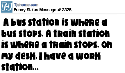 - # 70890 When I realized that a bus stops at a bus station and a train stops at a train station, I finally understood why my boss calls his desk a "Work Station".
