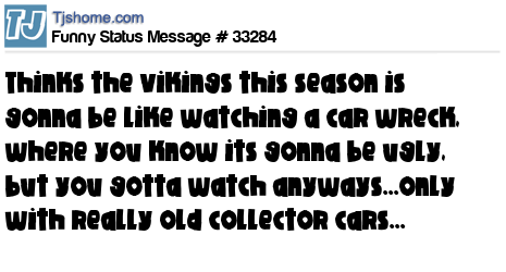 X thinks the vikings this season is gonna be like watching a car wreck, where you know its gonna be ugly, but you gotta watch anyways...only with really old collector cars...