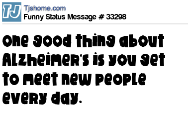 - # 85481 One good thing about Alzheimer's is you meet new people every day.