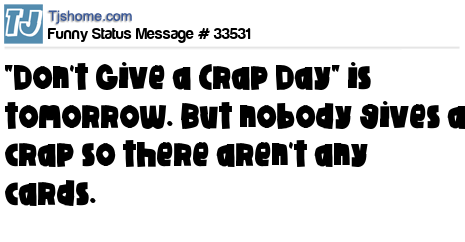 X "Don't Give a Crap Day" is tomorrow. But nobody gives a crap so there aren't any cards.