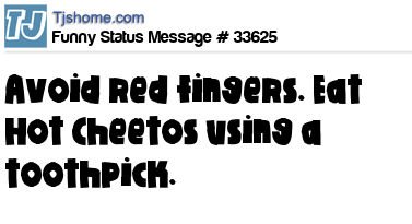 X is Avoid red fingers. Eat Hot Cheetos using a toothpick.
