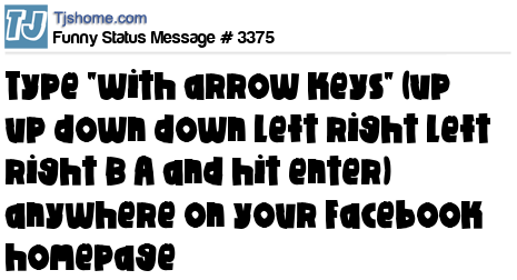 - # 3297 Type this on your facebook homepage. UP UP DOWN DOWN LEFT RIGHT LEFT RIGHT B, A + enter then click. The epic code lives on!