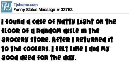 X  I found a case of Natty Light on the floor of a random aisle in the grocery store. After I returned it to the coolers, I felt like I did my good deed for the day.