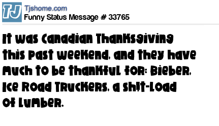 X It was Canadian Thanksgiving this past weekend, and they have much to be thankful for: Bieber, Ice Road Truckers, a sh!t-load of lumber.