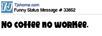 - # 166064 I love how coffee fixes everything. Tired? Drink some coffee. Headache? Drink coffee. Cold? Drink coffee. Someone makes your angry? Bust them in the head with the cup!!!