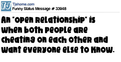 X An "open relationship" is when both people are cheating on each other and want everyone else to know.