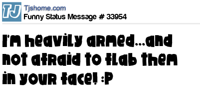 X says I'm heavily armed...and not afraid to flab them in your face! :P