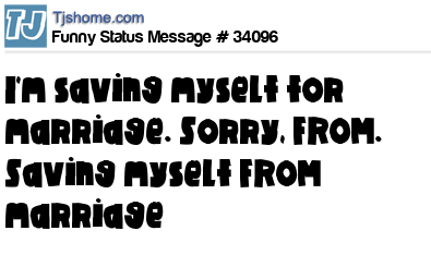 X I'm saving myself for marriage. Sorry, FROM. Saving myself FROM marriage