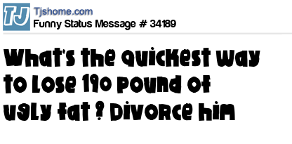 - # 34190 What's the quickest way to lose 190 pound of ugly fat ? Divorce her!