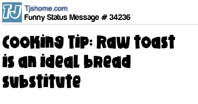 - # 164590 I think my girlfriend might have a problem, I asked her to toast some bread for me. She said, "Here's to bread, may it always be in our stomachs" as she swigged another mouthful of wine.
