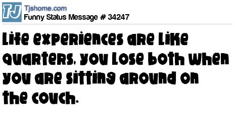 X Life experiences are like quarters, you lose both when you are sitting around on the couch.