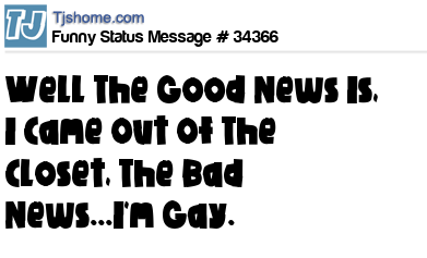 X says Well The Good News Is, I Came Out Of The Closet, The Bad News...I'm Gay.