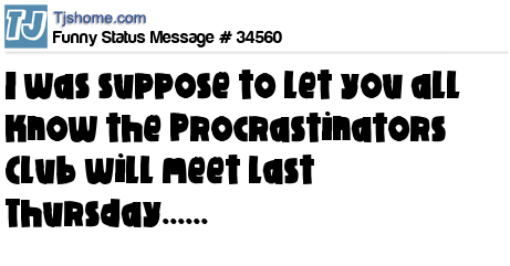 X is I was suppose to let you all know the Procrastinators Club will meet last Thursday......