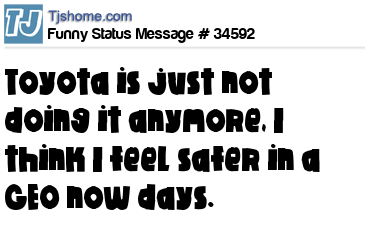 X Toyota is just not doing it anymore, I think I feel safer in a GEO now days.