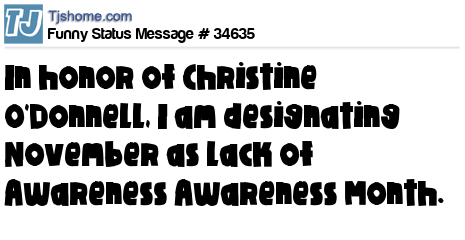 X In honor of Christine O'Donnell, I am designating November as Lack of Awareness Awareness Month.