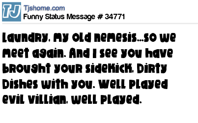 X is Laundry, my old nemesis…so we meet again. And I see you have brought your sidekick, Dirty Dishes with you. Well played evil villian, well played.