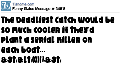 - # 22576 The Deadliest Catch would be so much cooler if they'd plant a serial killer on each boat.