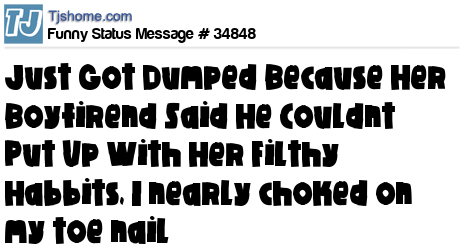 X has Just Got Dumped Because Her Boyfirend Said He Couldnt Put Up With Her Filthy Habbits, I nearly choked on my toe nail