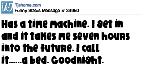 - # 97963 I've got a time machine. I get in and it takes me seven hours into the future. I call it… bed.