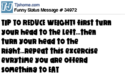 - # 62816 Tip to reduce weight: Turn your head to the left now turn it to the right. Repeat this exercise every time you are offered something to eat.