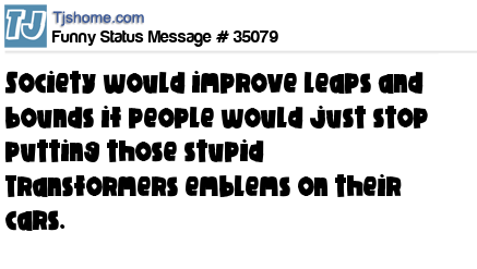 X Society would improve leaps and bounds if people would just stop putting those stupid Transformers emblems on their cars.