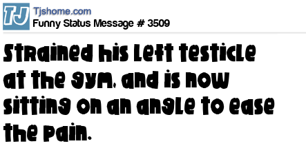 X has strained his left testicle at the gym, and is now sitting on an angle to ease the pain.