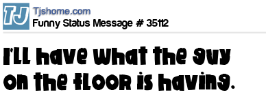 - # 34814 wonders how come so many people "Roll On The Floor *Laughing*" (ROTFL)? If I'm rolling on the floor, it's usually because I'm on fire. Send help.
