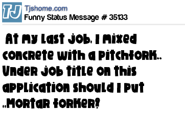 X is At my last job, I mixed concrete with a pitchfork.. Under job title on this application should I put ,,Mortar forker?