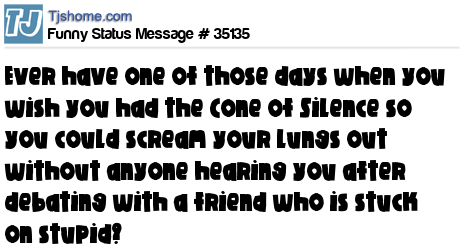 X is ever have one of those days when you wish you had the Cone of Silence so you could scream your lungs out without anyone hearing you after debating with a friend who is stuck on stupid?