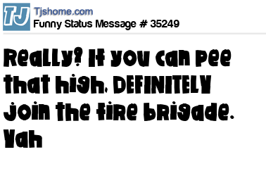 X says Really? If you can pee that high, DEFINITELY join the fire brigade. Yah