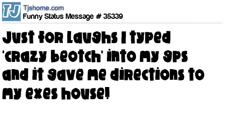 X Just for laughs I typed 'crazy beotch' into my gps and it gave me directions to my exes house!