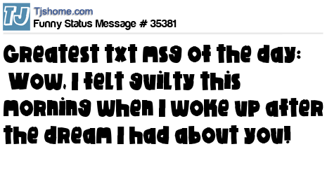 X Greatest txt msg of the day: Wow, I felt guilty this morning when I woke up after the dream I had about you!