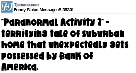 X "Paranormal Activity 2" - terrifying tale of suburban home that unexpectedly gets possessed by Bank of America.