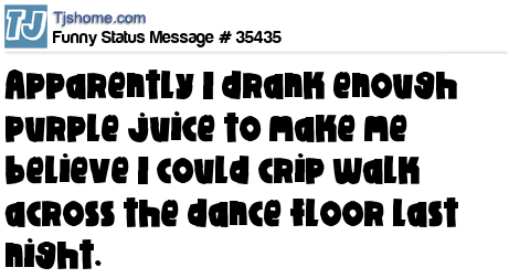 X Apparently I drank enough purple juice to make me believe I could crip walk across the dance floor last night.
