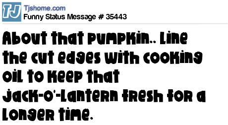 X says About that pumpkin.. line the cut edges with cooking oil to keep that jack-o'-lantern fresh for a longer time.