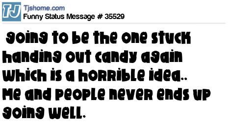 X going to be the one stuck handing out candy again which is a horrible idea.. Me and people never ends up going well.