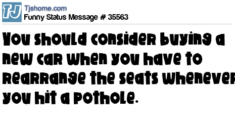 X You should consider buying a new car when you have to rearrange the seats whenever you hit a pothole.