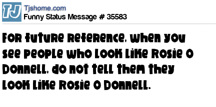 X For future reference, when you see people who look like Rosie O Donnell, do not tell them they look like Rosie O Donnell.