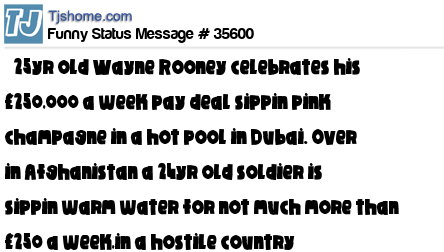 X is 25yr old Wayne Rooney celebrates his £250,000 a week pay deal sippin pink champagne in a hot pool in Dubai. Over in Afghanistan a 24yr old soldier is sippin warm water for not much more than £250 a week,in a hostile country surrounded by people who w