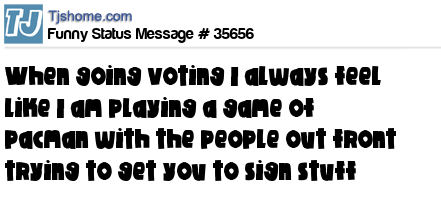 X When going voting I always feel like I am playing a game of pacman with the people out front trying to get you to sign stuff