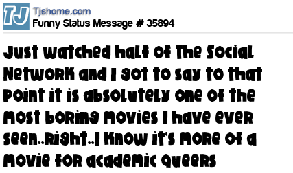 - # 32780 You know you have a Facebook addiction if seeing the movie "The social network" is your Friday night fun!!